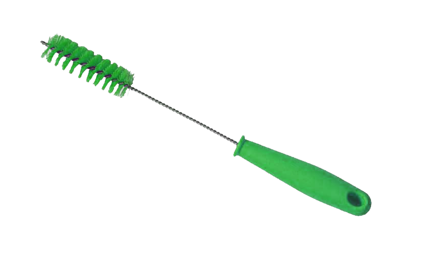 375mm overall x 25mmØ medium Polyester twisted in stainless steel wire brush, with plastic handle.